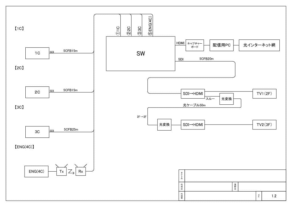 鹿児島市内 ― こども園様おたのしみ会撮影 2022.11.28実績鹿児島市内のこども園様にて「おたのしみ会」の撮影・WEB生配信・映像分配・DVD制作を行いました。 この度はありがとうございました。 ↑系統図例です実績DVD・BD制作, WEB配信, YouTubeライブ, マルチカメラ収録, 映像分配 WEB配信って??